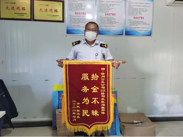 幾日后,張先生拿寫著“拾金不昧,服務為民”的錦旗來到調(diào)度室,表達了對張閣堂的感謝之情。