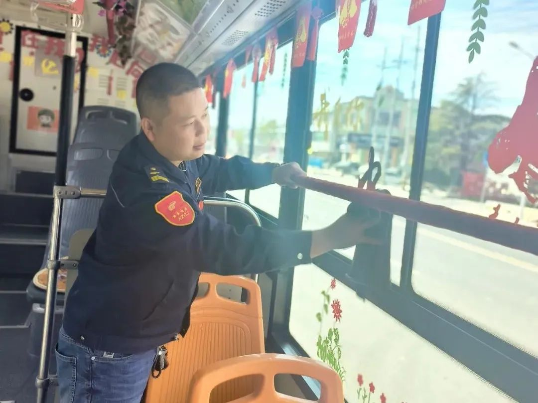 為了給乘客一個(gè)舒適的乘車環(huán)境,他總是想辦法把車輛布置得很溫馨。冬天他在車上張貼了紅色的窗花,在扶手上纏上暖暖的紅絲絨。春天張貼了柳葉、花草,讓車廂充滿春天的氣息。為了讓大家感受到雷鋒精神,他在車內(nèi)制作了以雷鋒精神為主題的標(biāo)語、拉手,在車前放置了便民箱,為乘客提供暈車藥、創(chuàng)可貼、針線包等物品。為慶祝建黨百年,王石龍把車廂裝扮成紅色宣傳車,添置了紅色小人書,自費(fèi)做了燈箱畫報(bào),并放置了醫(yī)藥箱、便民袋。在他的車廂里,可以讀到軍隊(duì)十大英模人物和雷鋒的先進(jìn)事跡,可以閱覽無償獻(xiàn)血宣傳畫報(bào)。今年國慶前期,王石龍自費(fèi)購買了小禮物贈(zèng)與乘客,在清華中學(xué)定制公交上,王石龍還與同學(xué)生們一起,揮舞著國旗,共同慶祝祖國母親73歲華誕。