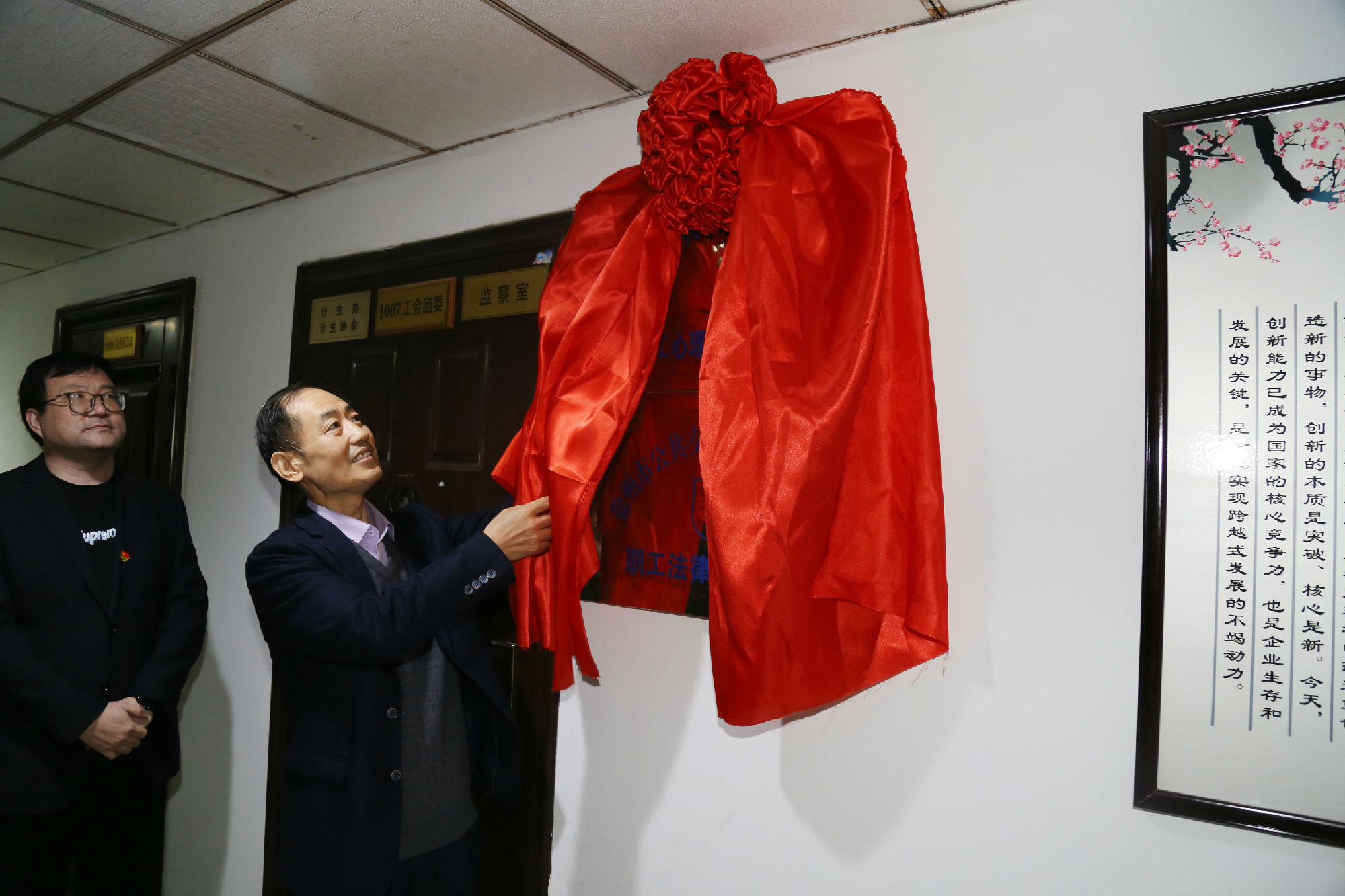 為進(jìn)一步落實(shí)公交家文化建設(shè)工程,幫助職工維護(hù)自身合法權(quán)益,關(guān)注職工心理健康,推動(dòng)創(chuàng)建幸福和諧企業(yè),31日上午,徐州公交集團(tuán)職工法律援助中心、職工心理健康疏導(dǎo)中心在公交大廈10樓掛牌成立。集團(tuán)黨委書記、董事長高守江,紀(jì)委書記、工會(huì)主席袁夫松現(xiàn)場揭牌。