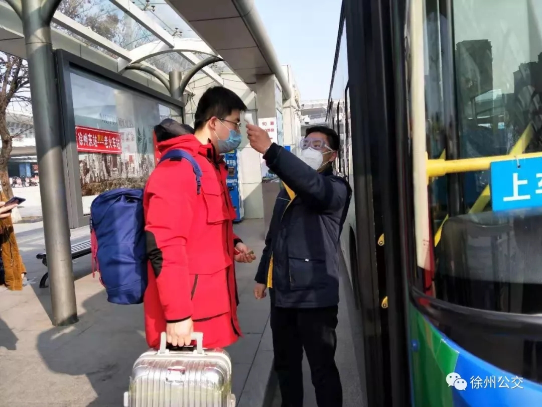 根據(jù)《徐州市新型冠狀病毒感染的肺炎疫情防控應(yīng)急指揮部通告(第1號)》,從1月27日(農(nóng)歷初三)開始,徐州全面暫停徐州市區(qū)城市公共交通(徐州東站至徐州站單向點對點接駁線路除外)和道路客運(yùn)班線、包車運(yùn)營(機(jī)場定制客運(yùn)除外),徐州各縣(市、區(qū))也同時停止所有道路客運(yùn)班線運(yùn)營。“這8輛車是目前市區(qū)內(nèi)唯一還在運(yùn)營的公交線路了,雖然乘客不多,但我們依然要做到萬無一失。”張經(jīng)理告訴記者,根據(jù)上級部門的要求,徐州公共交通集團(tuán)順通巴士公司在疫情防控期間每天每班配備8輛車(分上午、下午、夜班三個班次),40余名駕駛員輪崗,運(yùn)營時間為6:00-24:00(每天直到夜里高鐵運(yùn)營結(jié)束)。這8輛車的運(yùn)行路線為高鐵徐州東站——徐州火車站單程點對點接駁班車。每天服務(wù)乘客約500-600人次。為確保疫情防控,所有車輛堅持做到每趟通風(fēng),1趟1消毒,并使用空氣消毒機(jī)進(jìn)行消毒。同時,對所有上車乘客進(jìn)行體溫測量,嚴(yán)禁不戴口罩乘客上車,并對當(dāng)班駕駛員每趟運(yùn)營結(jié)束后都進(jìn)行體溫測量。